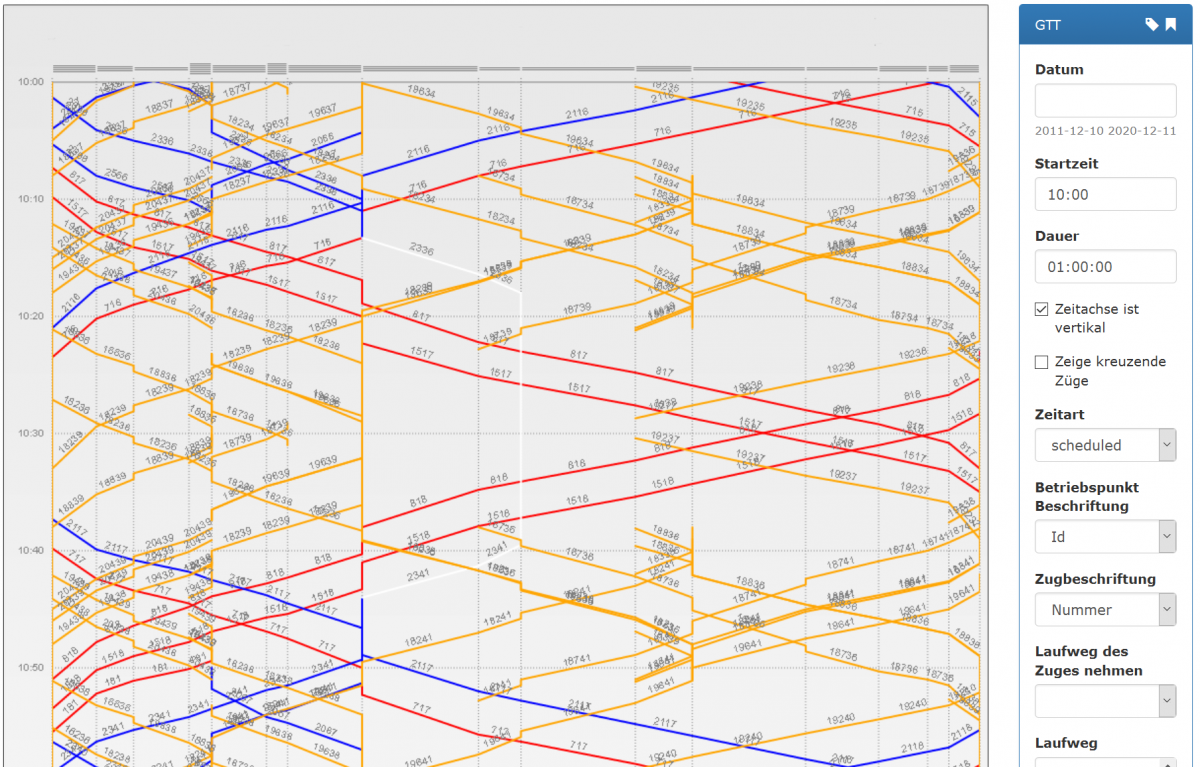 - Umfasst Bildfahrplan, Gleisbelegungsplan, Topologiesicht, Fahrplananimation, tabellarische Übersichten