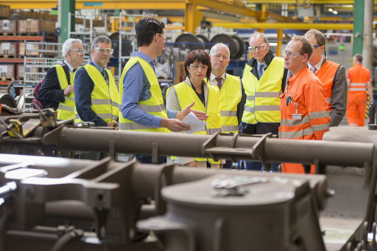 Anlässlich eines Arbeitsbesuchs reiste Bundesrätin Doris Leuthard heute in die Eisenbahnerstadt Olten. Im Mittelpunkt der Betriebsbesichtigung standen die Gespräche mit SBB-Mitarbeitenden vor Ort. Die Bundesrätin besuchte die neu eröffnete Betriebszentrale «BZ Mitte» von wo aus der Bahnverkehr des Schweizer Mittellandes rund um die Uhr gesteuert wird. Ebenso liess sich Doris Leuthard vor Ort über die Modernisierung der SBB-Flotte informieren. Die SBB investiert jährlich rund 1 Mia. CHF in die Erneuerung ihrer Fahrzeugflotte.